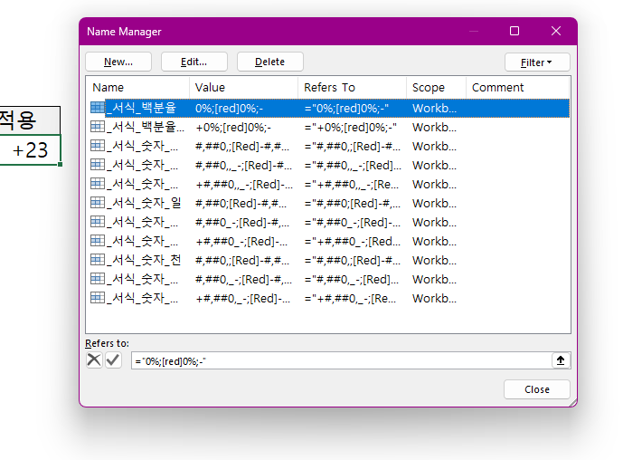 이름정의로 서식 지정하기